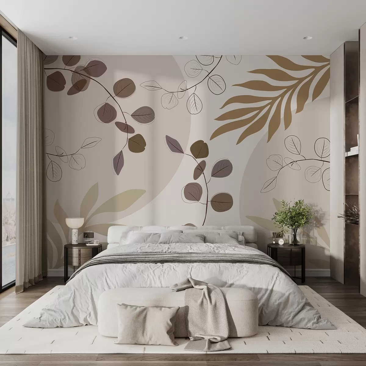 Papel tapiz Composición abstracta con hojas en tonos beige Nr. w03857