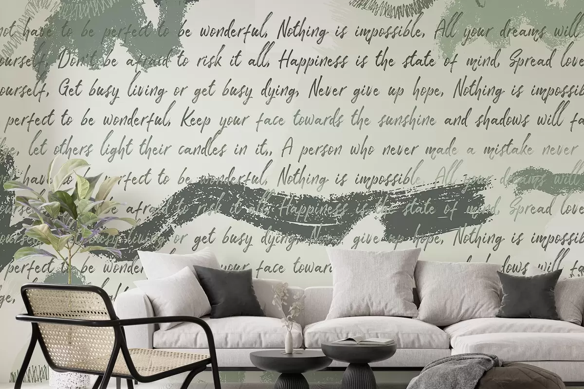 Papel tapiz Diseño con citas inspiradoras, abstracción, colores verdes Nr. w03909v1