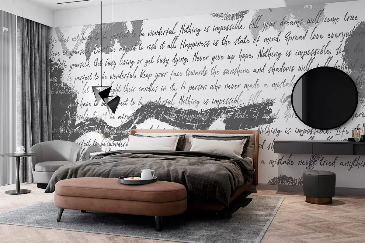 Papel tapiz Diseño con citas inspiradoras, abstracción, colores grises Nr. w03909v4