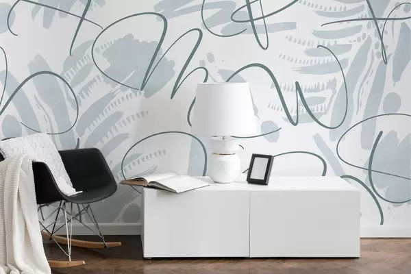 Papel tapiz Abstracción caligráfica con letras, pinceladas, color azul Nr. w03913v1