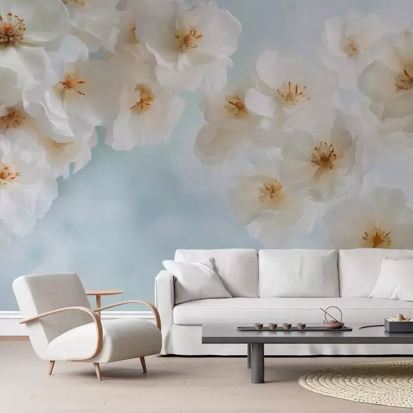 Papel tapiz Delicadas flores grandes sobre fondo azul claro Nr. w03931v1
