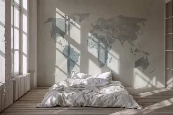 Papel tapiz Mapamundi con motivo, tonos azules Nr. w03954v2