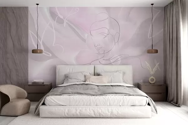 Papel tapiz Abstracción floral con dibujo lineal de Buda, colores rosas Nr. w04004v2