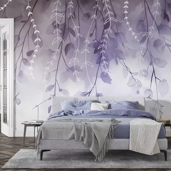 Papel tapiz Ramas con hojas en estilo acuarela, colores morados naturales Nr. w04007v2