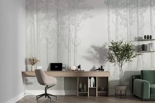 Papel tapiz Bosque con abedules, minimalismo, naturaleza, paleta de colores verdes Nr. w04009v1