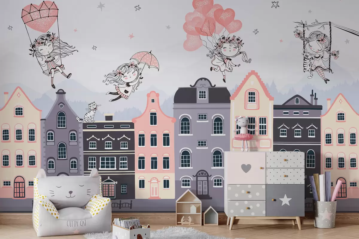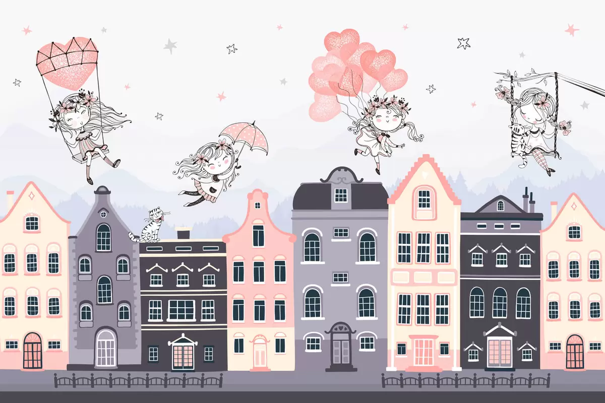 Papel tapiz Paisaje urbano con chicas guapas Nr. w04014