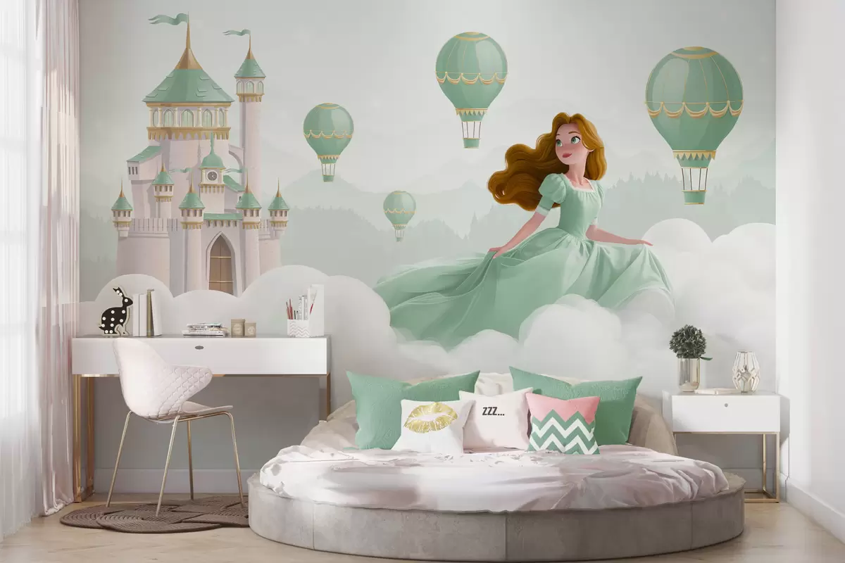 Papel tapiz Princesa entre las nubes sobre el fondo del paisaje con el castillo Nr. w04015v2