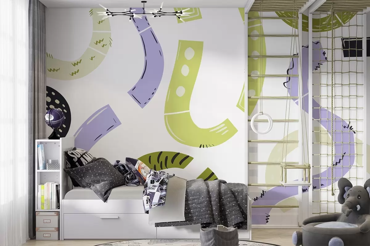 Papel tapiz Dibujos abstractos, juvenil, garabatos, verde, morado Nr. w04066v1