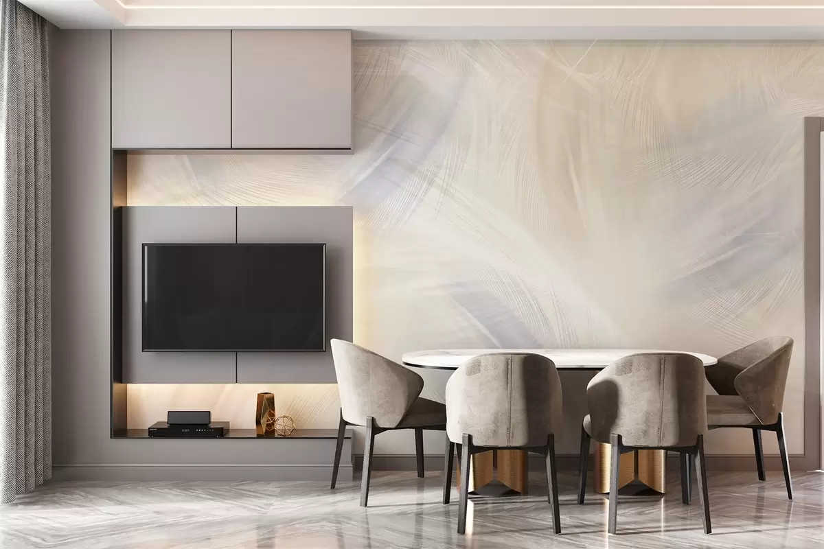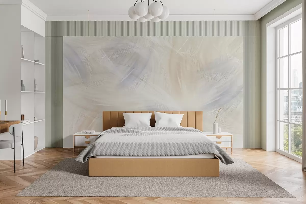 Papel tapiz plumas vaporosas en tonos azules y beige Nr. w04071v2