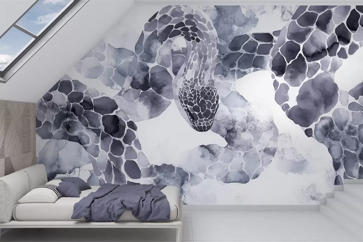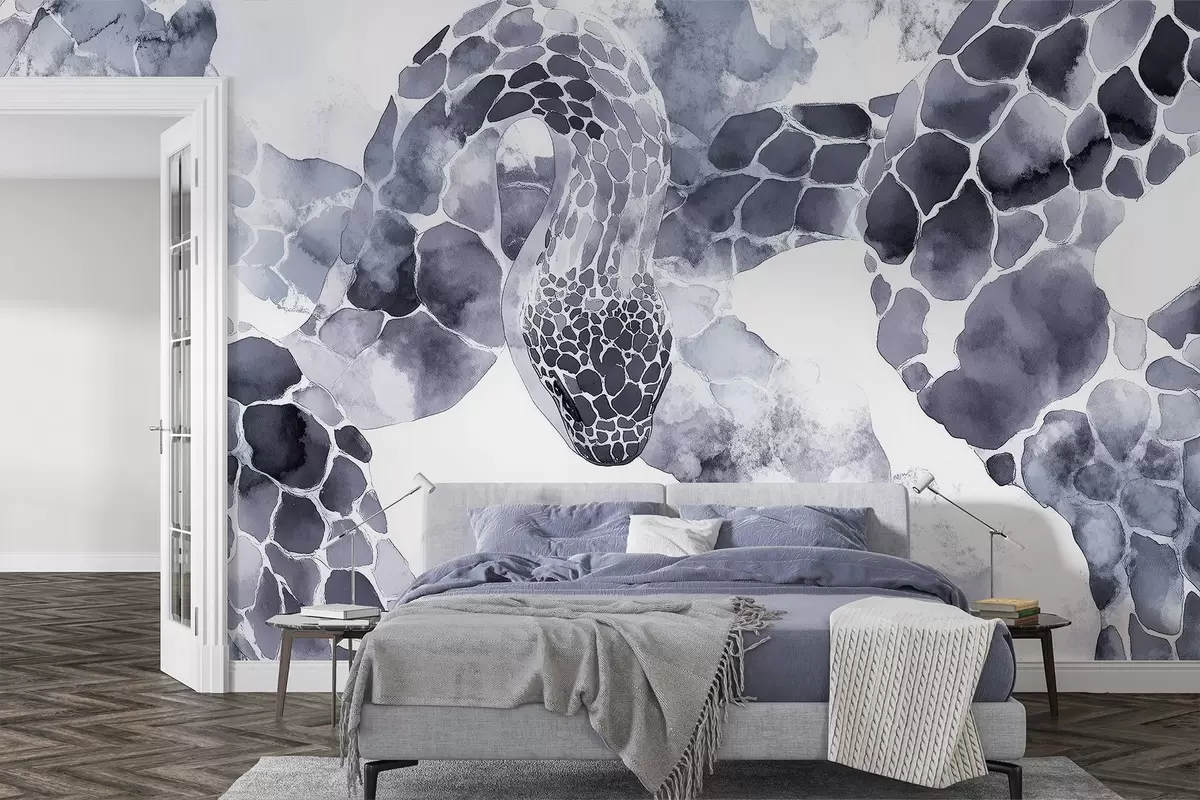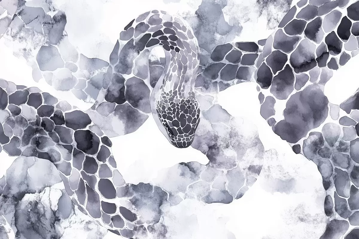 Papel tapiz Silueta de serpiente, estilo acuarela, colores azules Nr. w04113