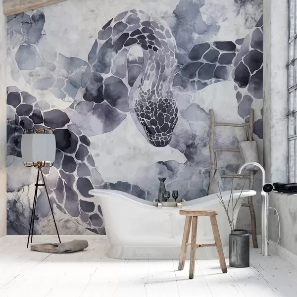 Papel tapiz Silueta de serpiente, estilo acuarela, colores azules Nr. w04113