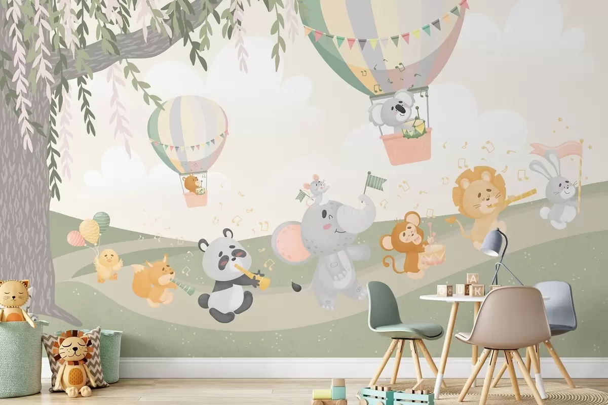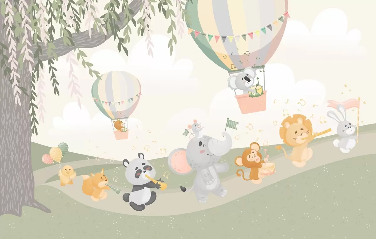 Papel tapiz Paisaje con animales tocando instrumentos musicales Nr. w04200v1