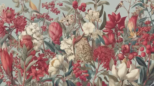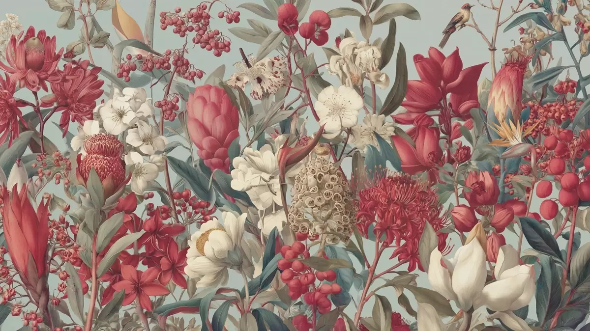 Papel tapiz flores tropicales con textura sobre fondo azul Nr. w04209