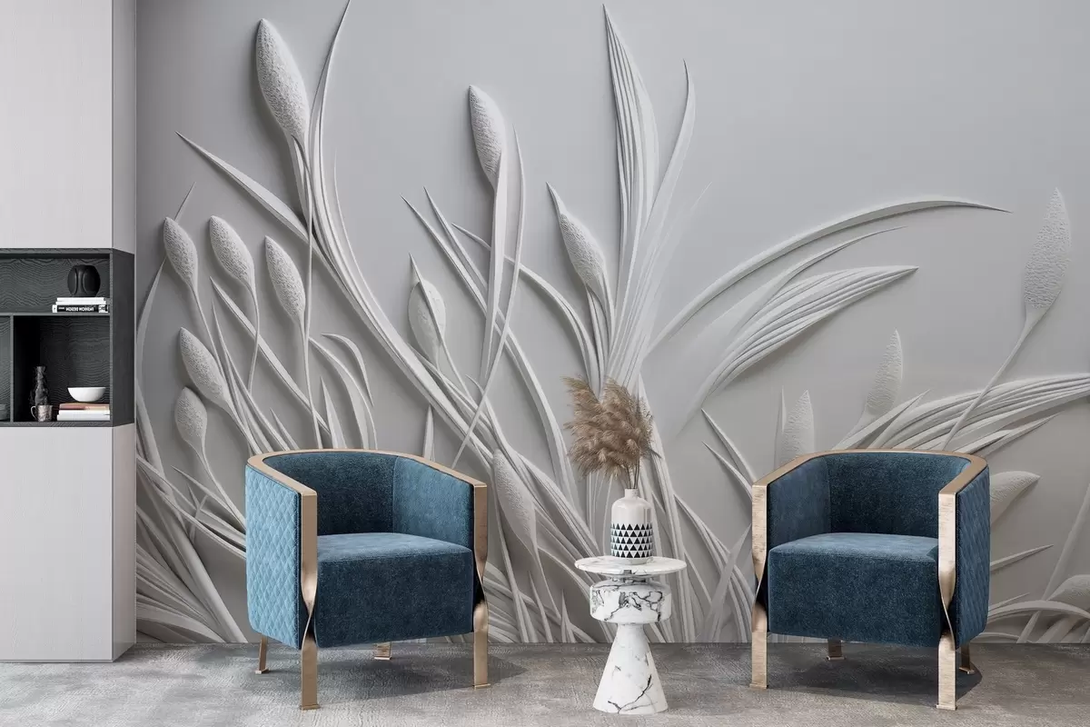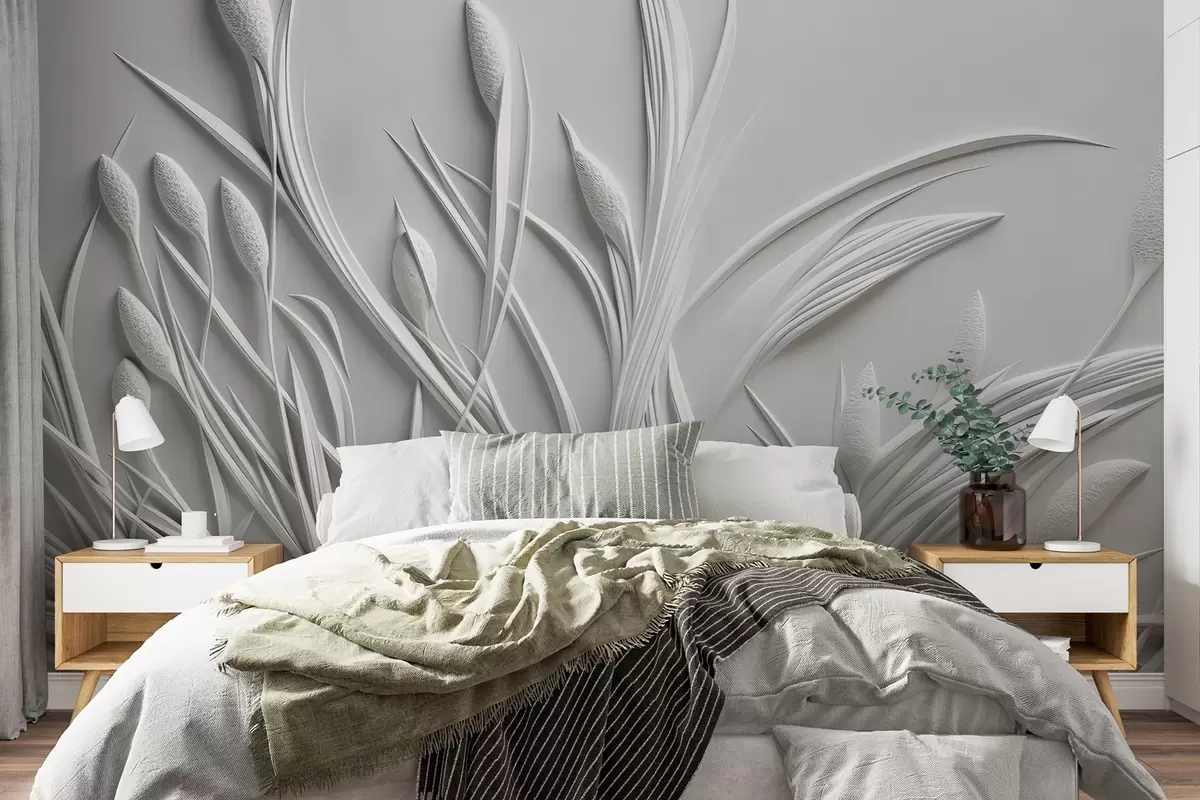 Papel tapiz Bajorrelieve con delicadas hojas y pámpanos Nr. w04247