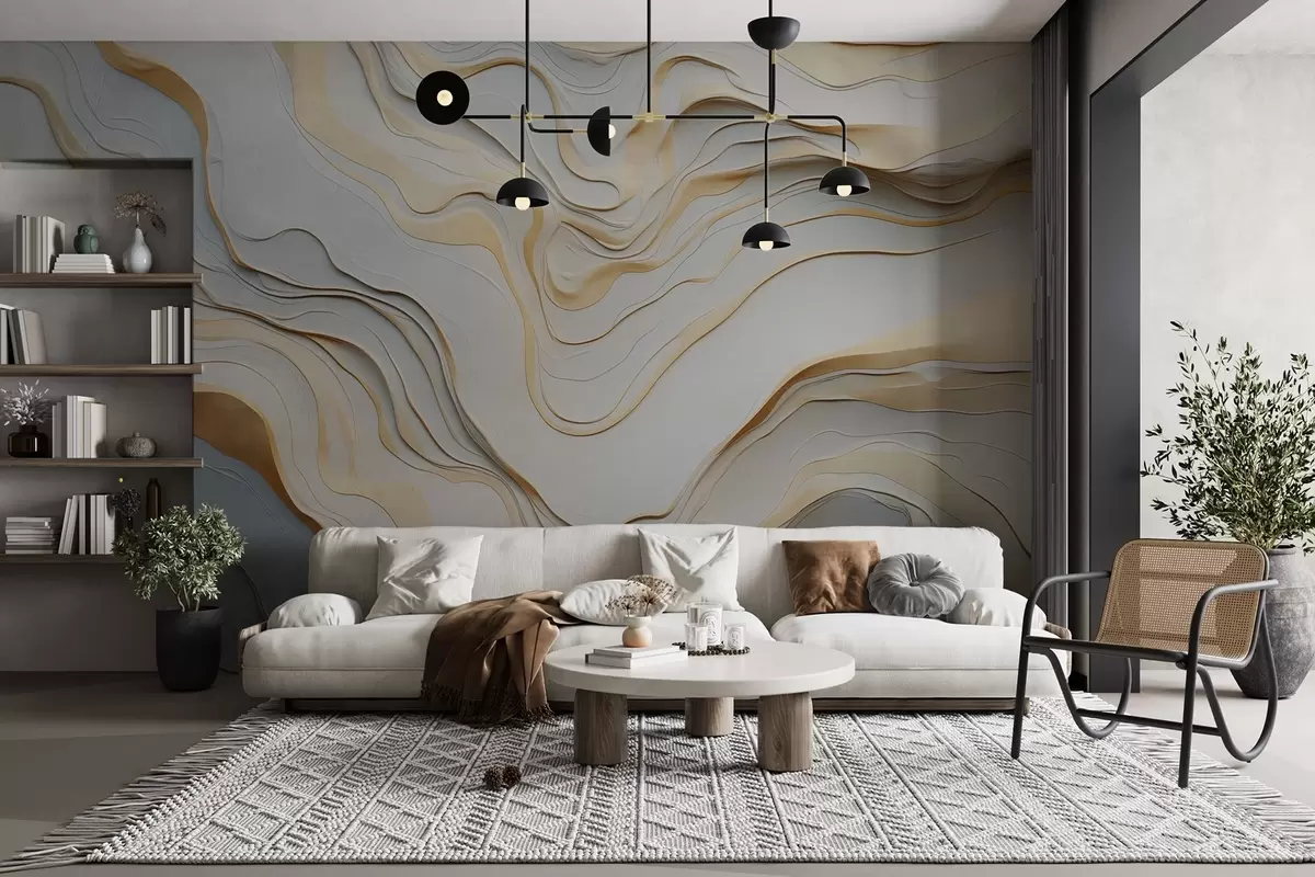 Papel tapiz capas, ondas, abstracción, beige, gris, suavidad, moderno Nr. w04255