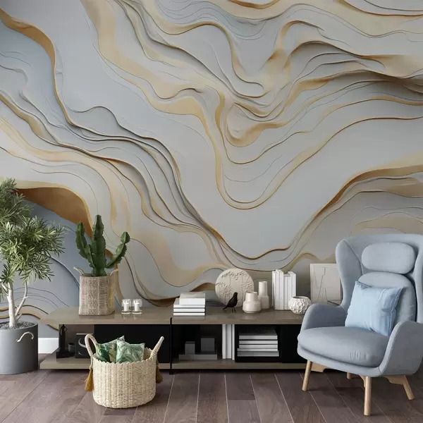 Papel tapiz capas, ondas, abstracción, beige, gris, suavidad, moderno Nr. w04255