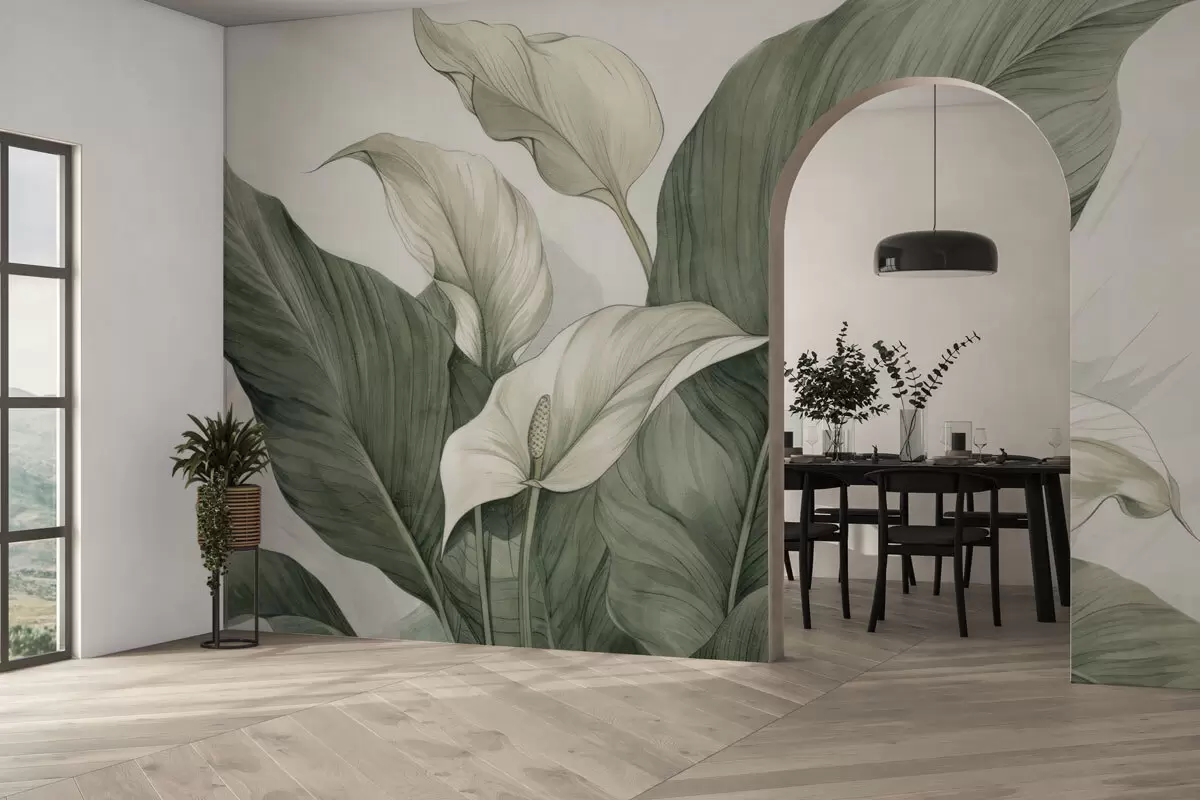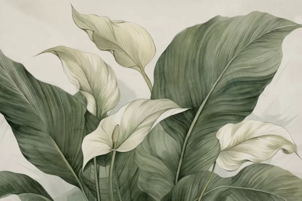 Papel tapiz Primer plano de spathiphyllum en flor con hojas grandes Nr. w04263