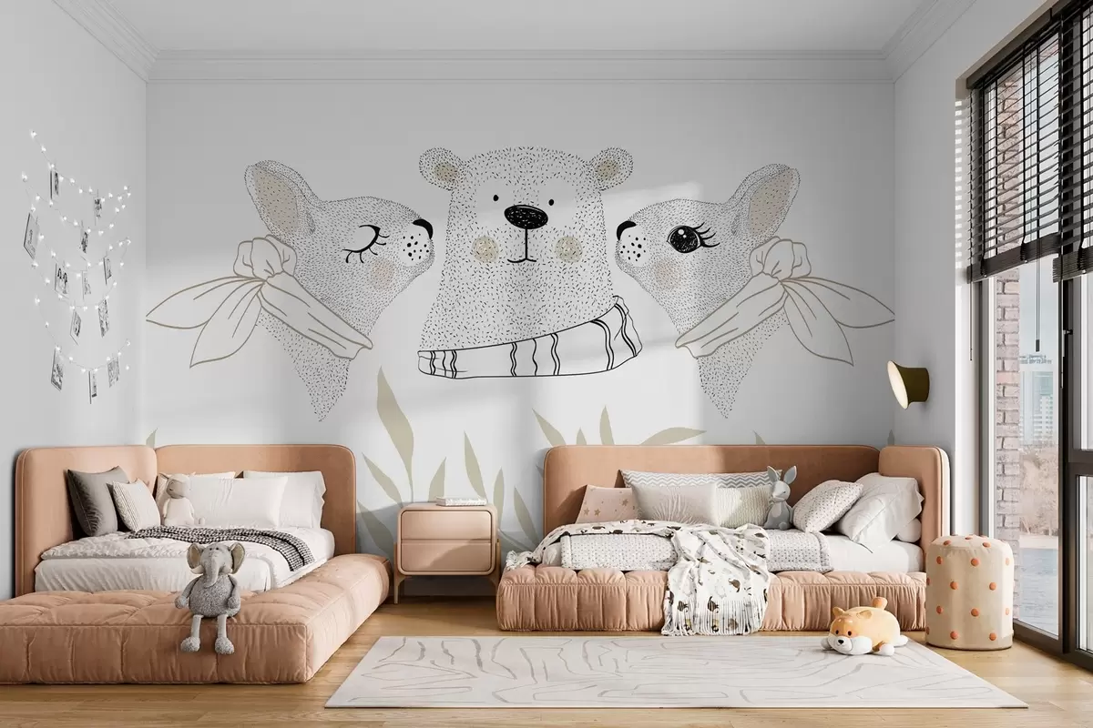 Papel tapiz Animales divertidos, liebres y un osezno Nr. w04269v1