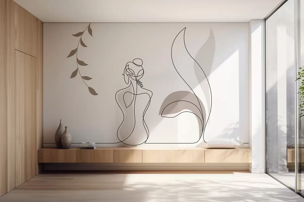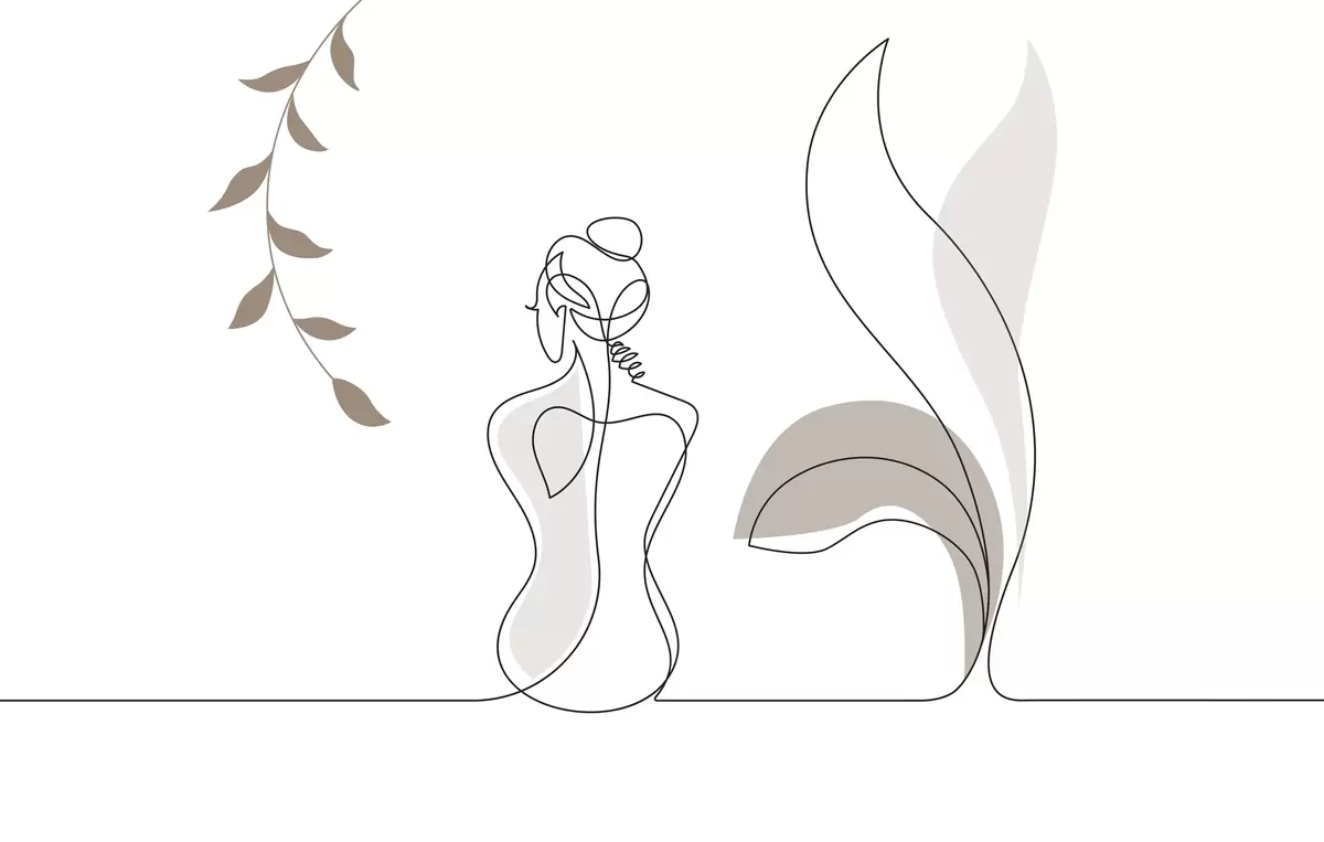 Papel tapiz silueta lineal de una mujer y hojas Nr. w04303