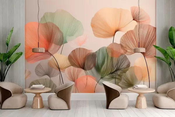 Papel tapiz hojas de ginkgo multicolores con venas Nr. w04305
