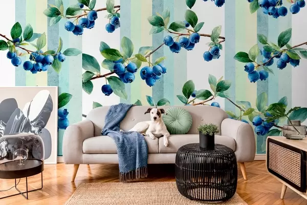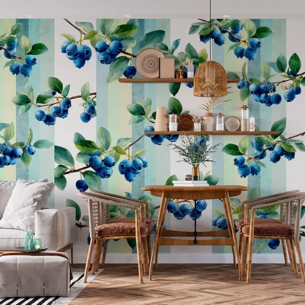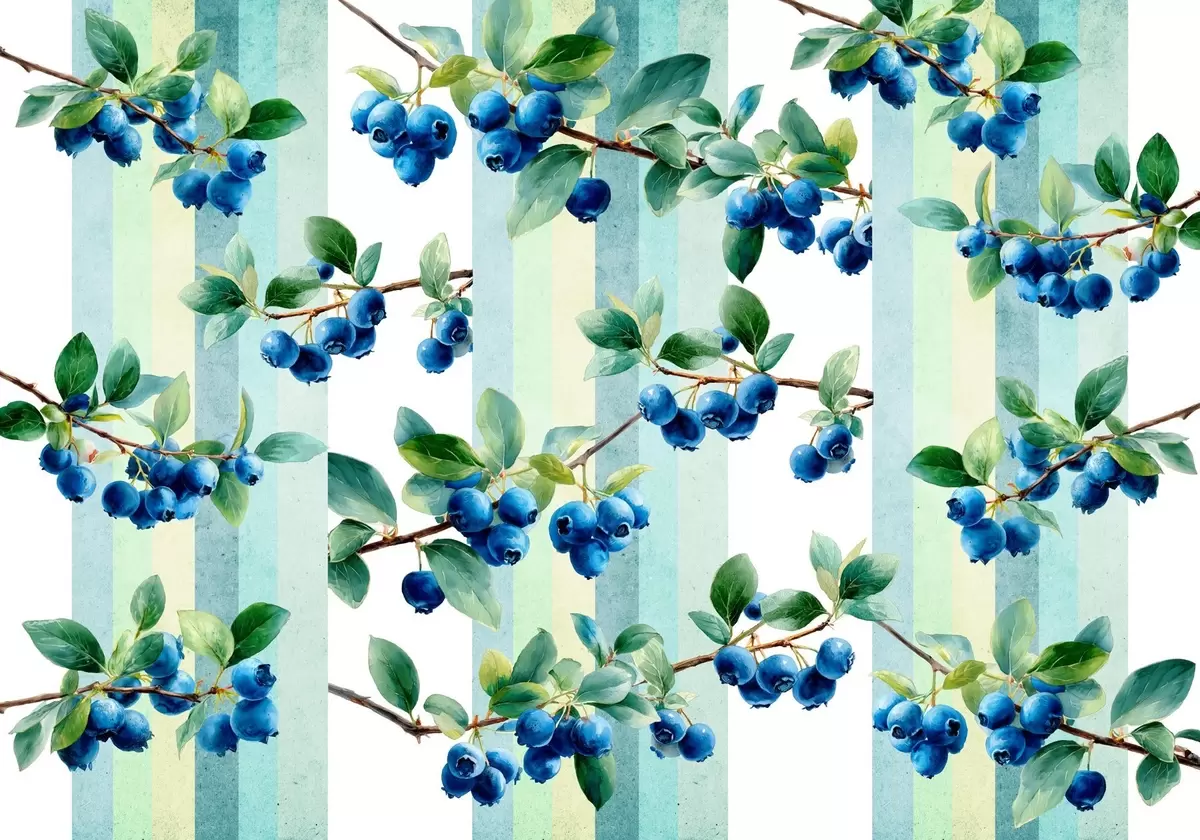 Papel tapiz racimos de arándanos sobre fondo rayado Nr. w04307