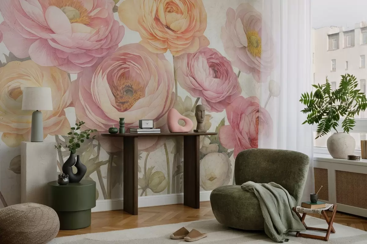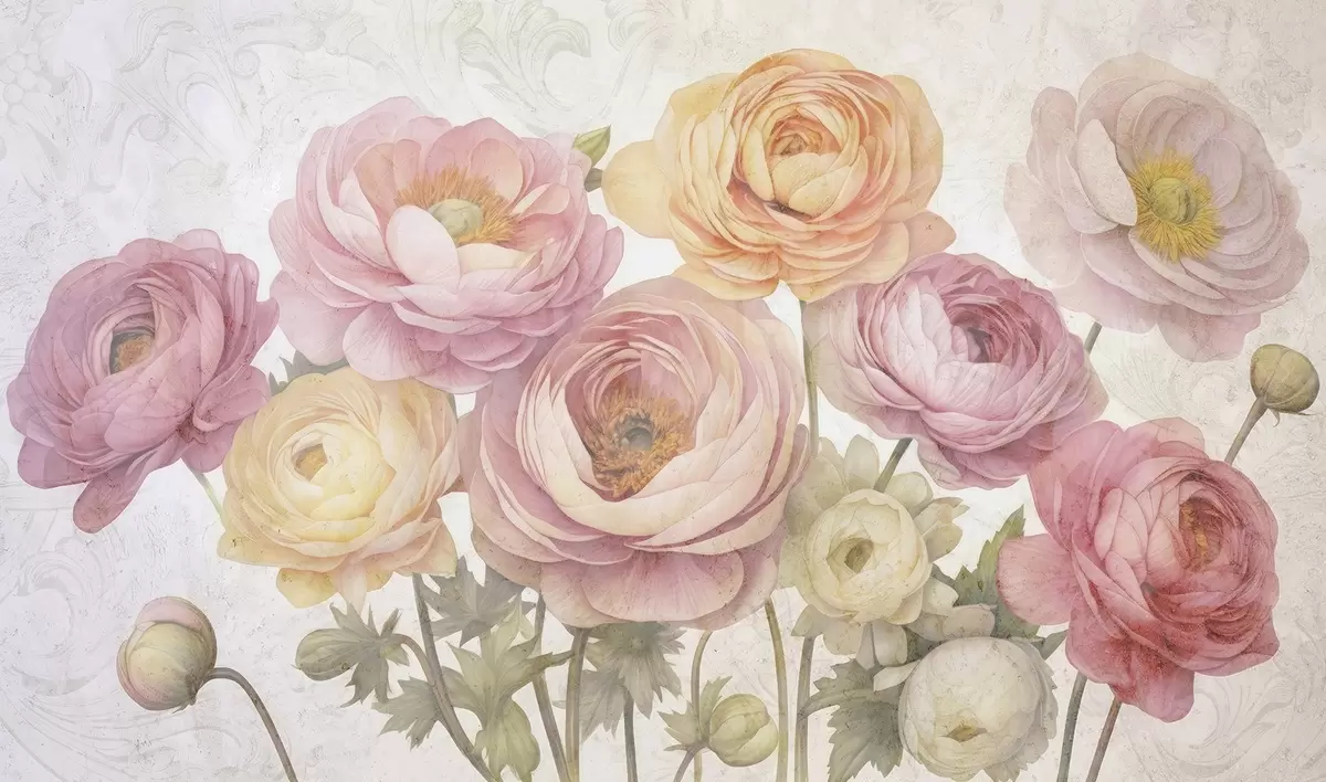 Papel tapiz Ramo vintage de ranúnculos Nr. w04326