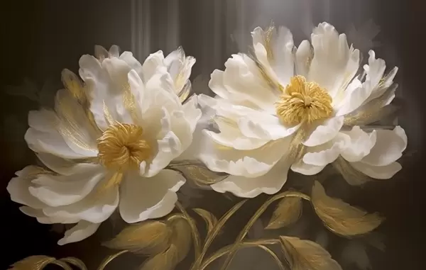 Papel tapiz Flores claras con reflejos sobre fondo oscuro Nr. w04344