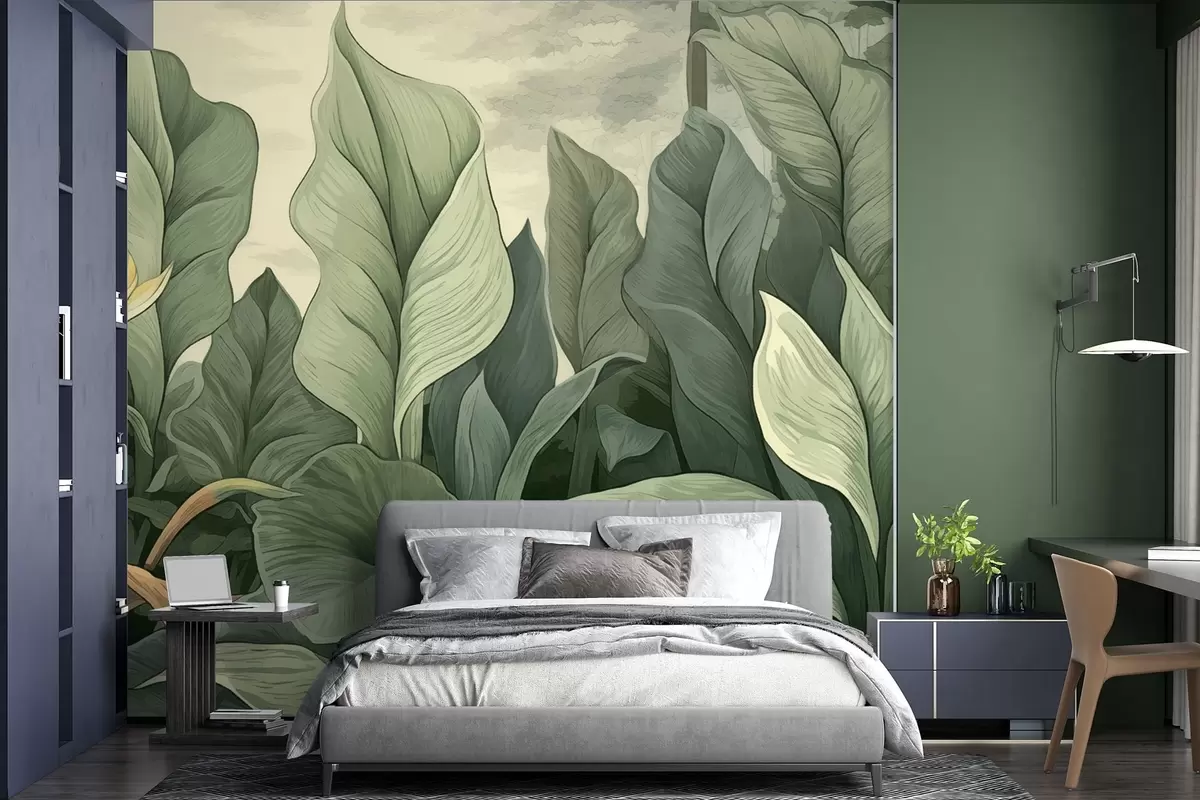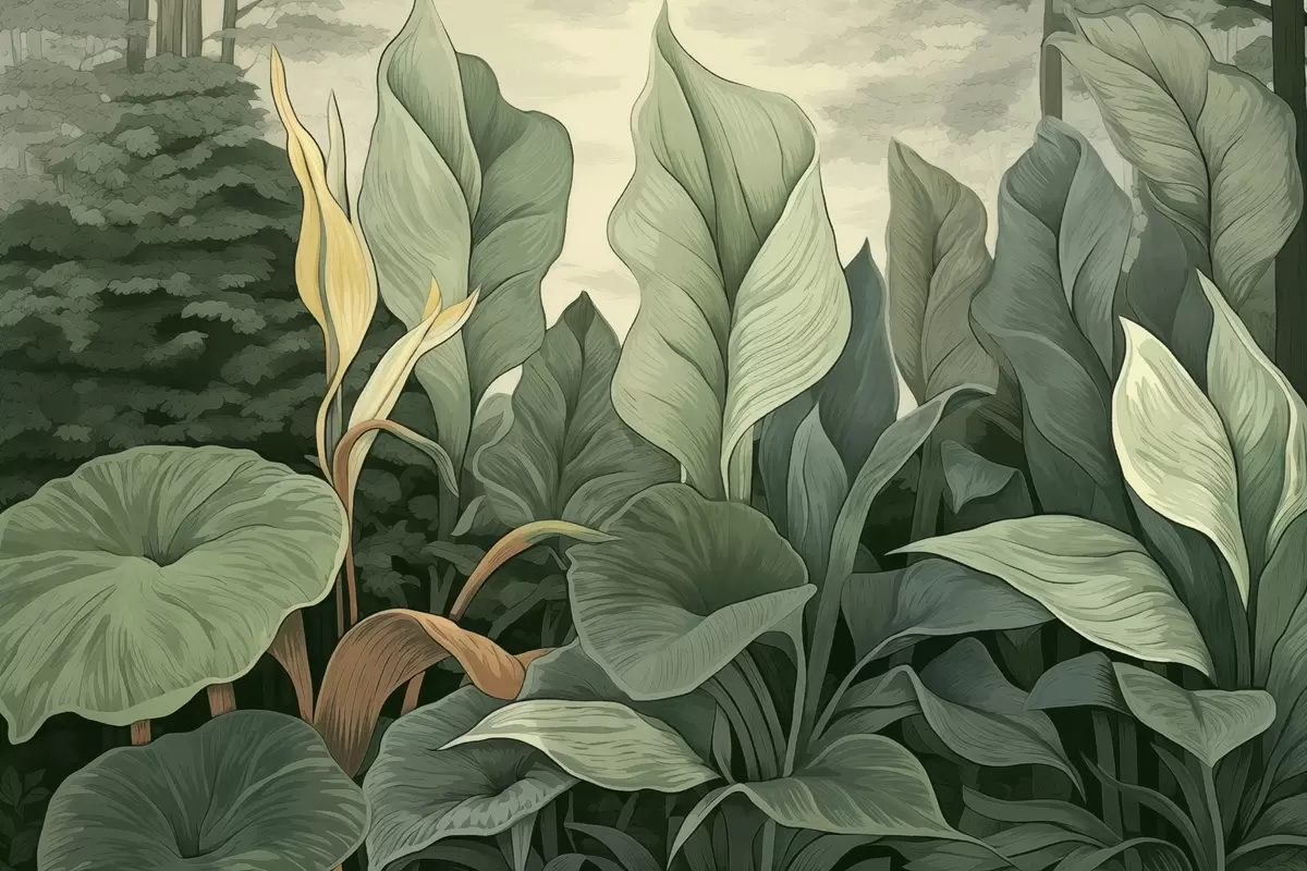 Papel tapiz Ilustración de una planta tropical en estilo botánico Nr. w04347