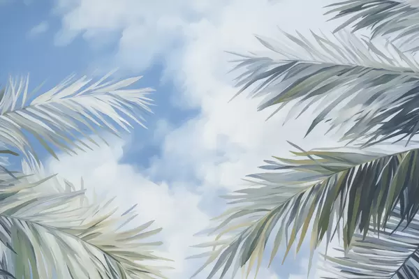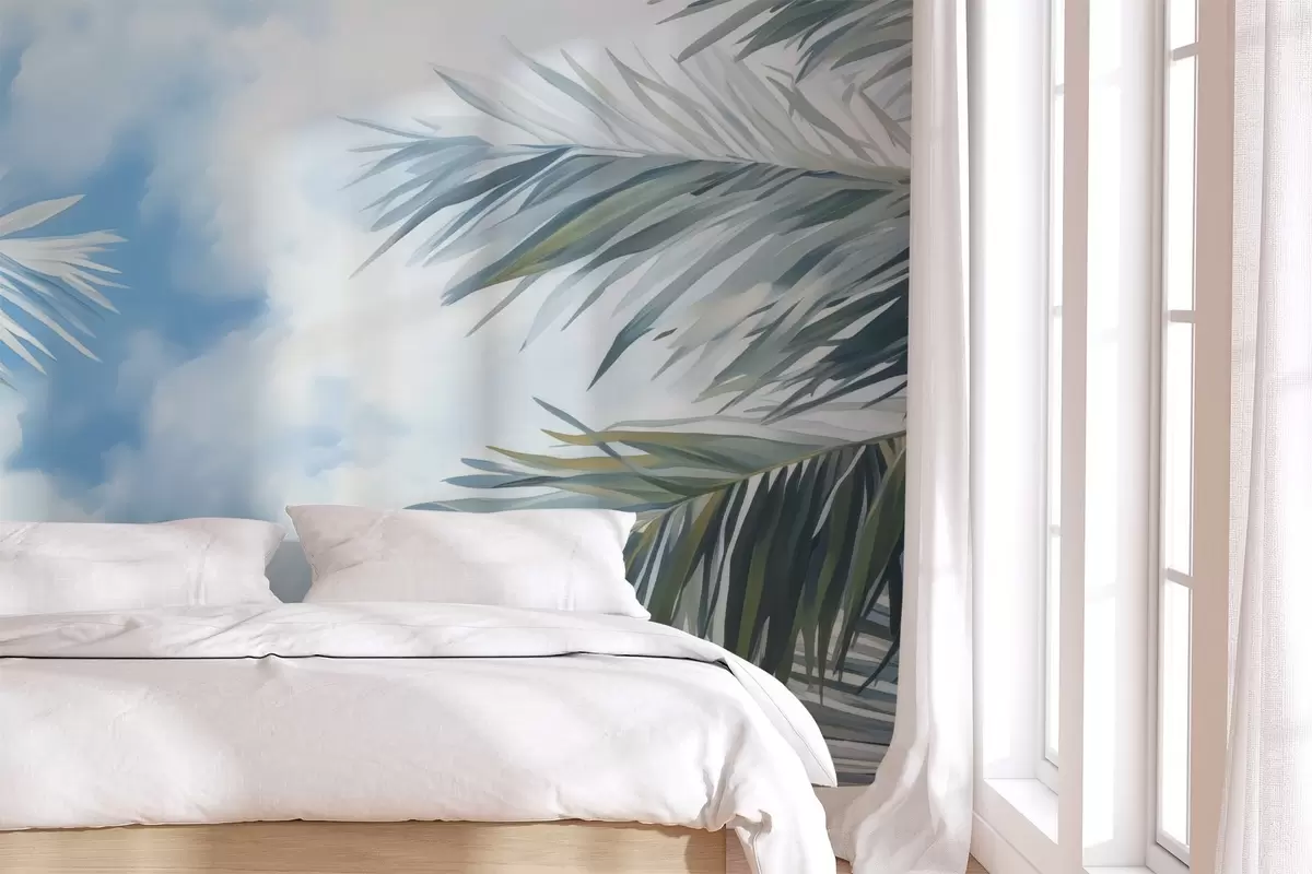 Papel tapiz Hojas de palmera contra el cielo Nr. w04361