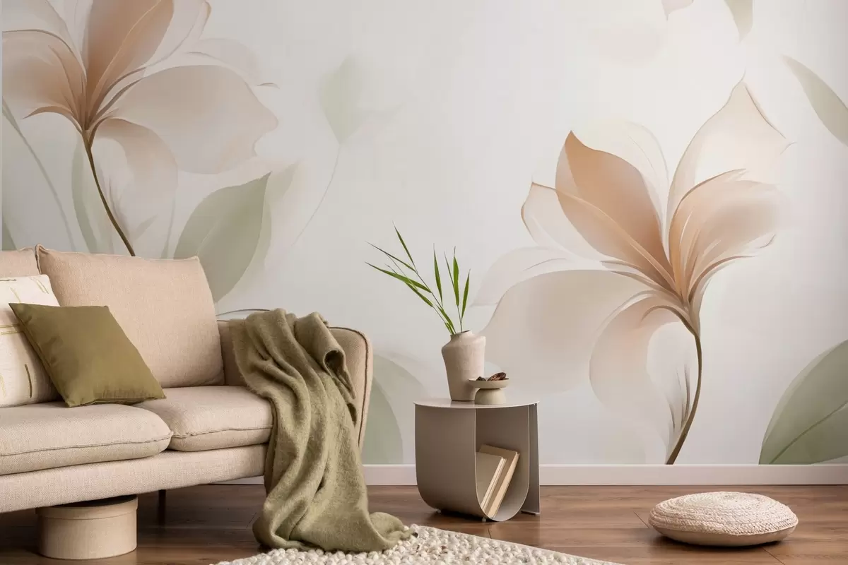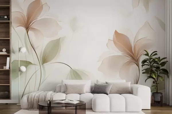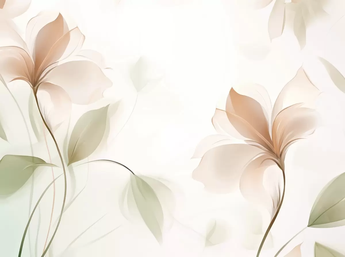 Papel tapiz Flores transparentes en cálidos tonos beige y rosa Nr. w04397