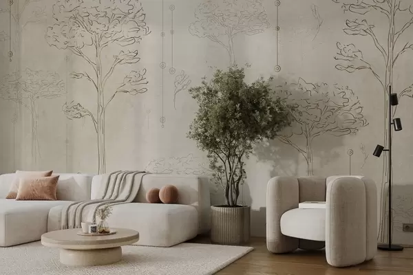 Papel tapiz Siluetas lineales de árboles en estilo minimalista Nr. w04403