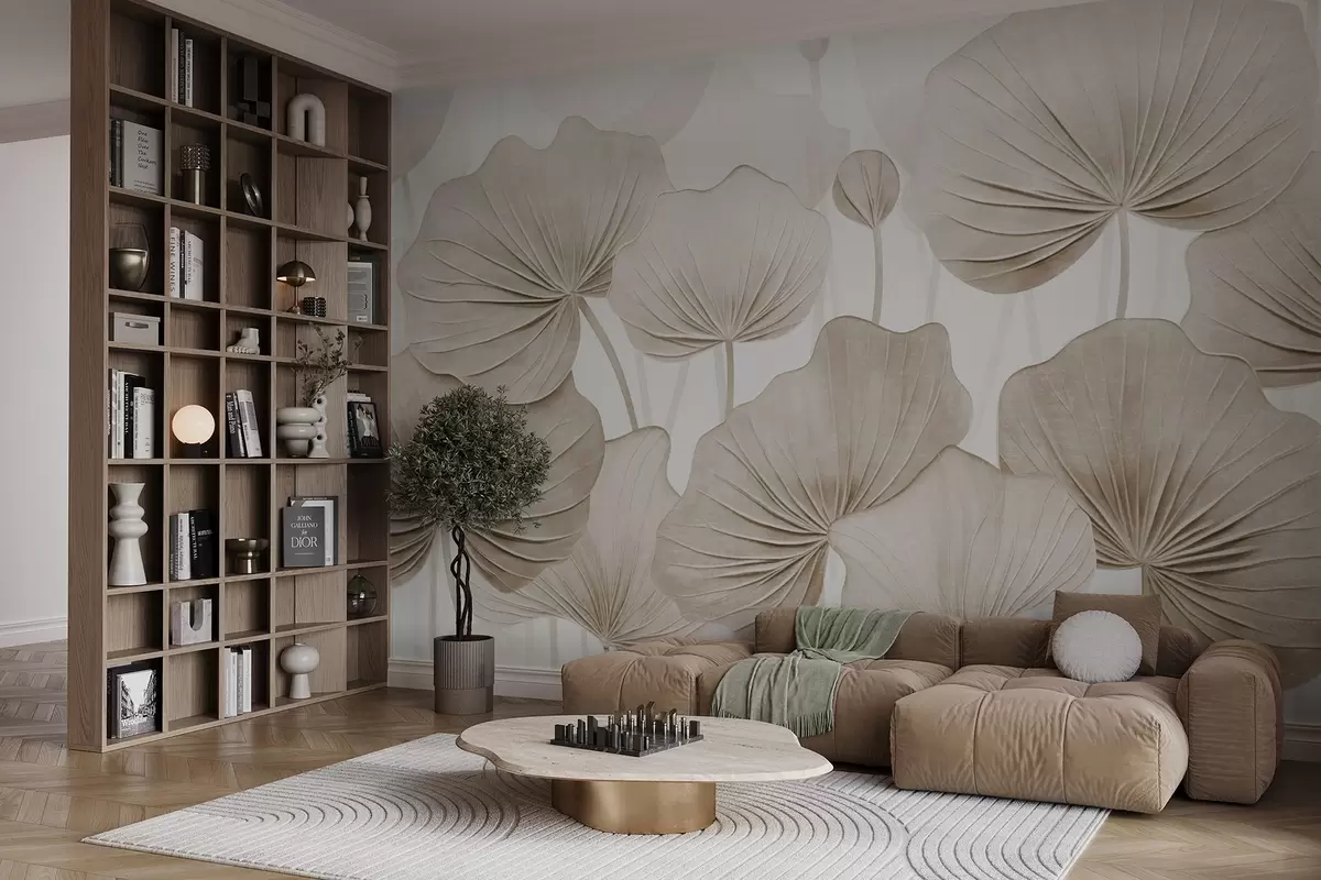 Papel tapiz Hojas de loto con imitación de textura envejecida Nr. w04412v1