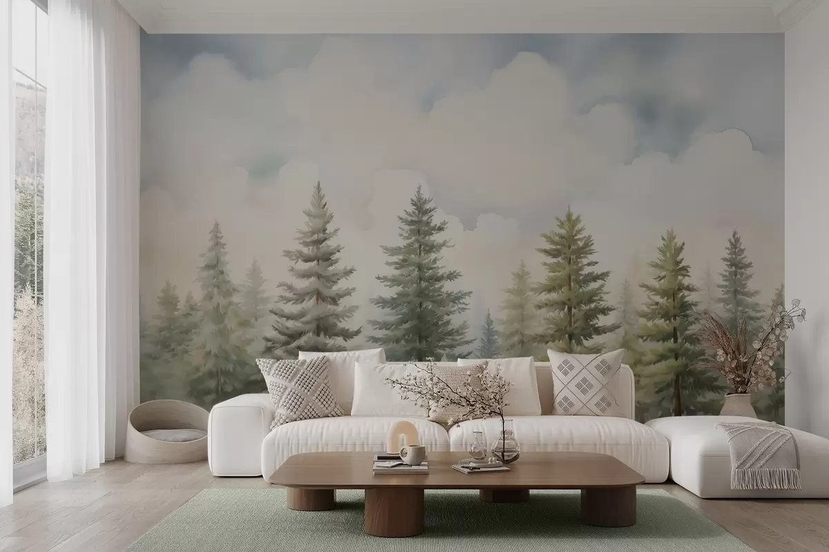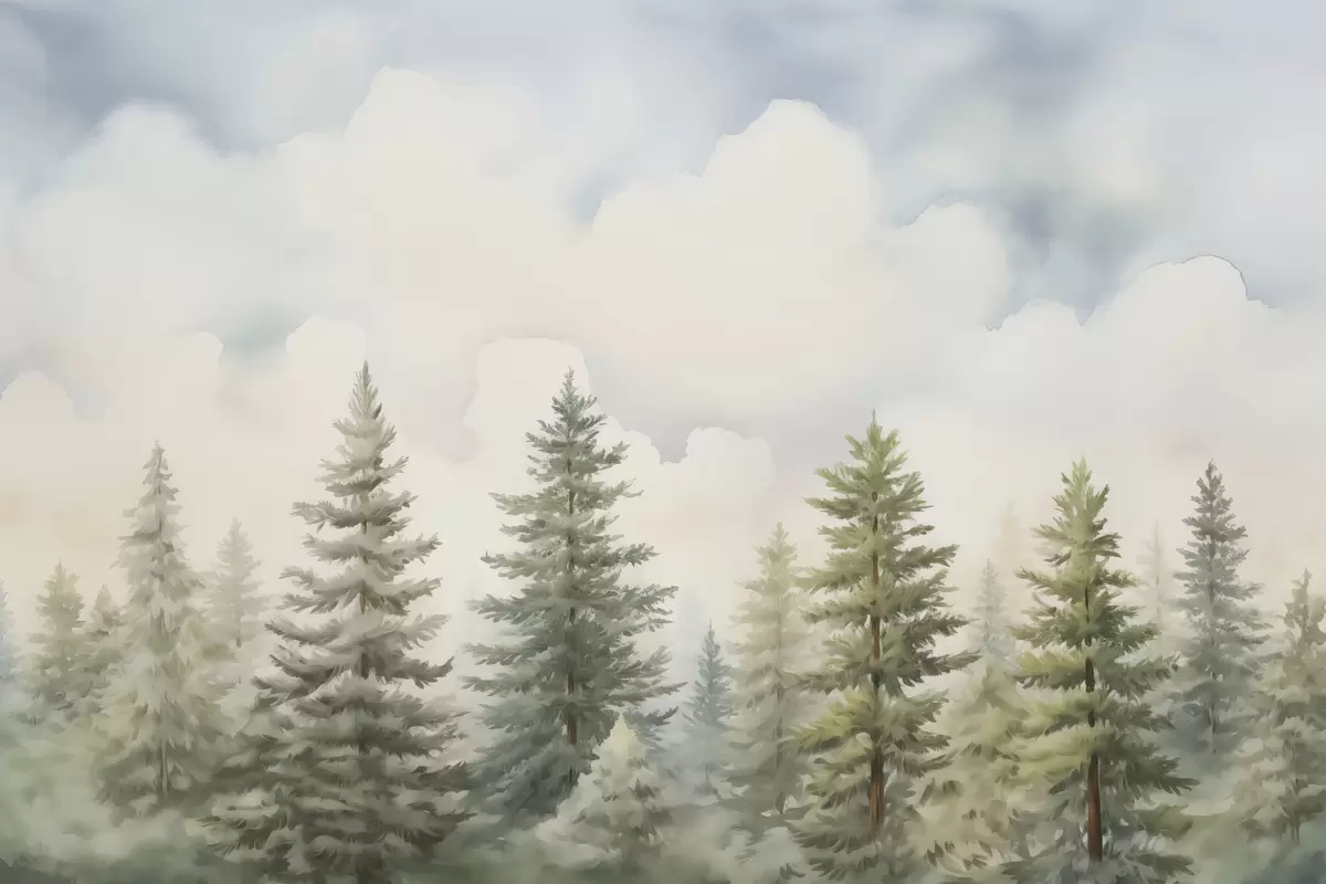 Papel tapiz Pintura imitación bosque de coníferas Nr. w04414