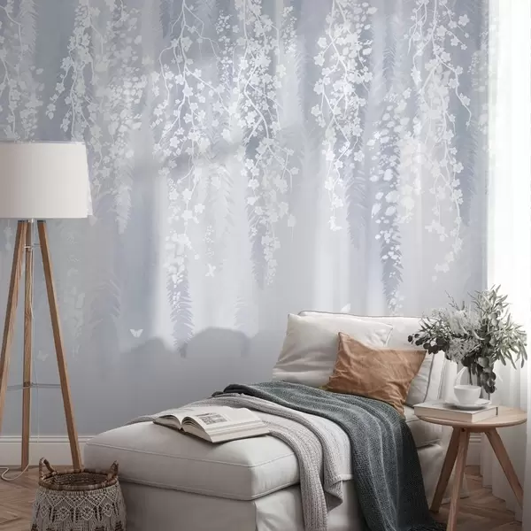 murales de pared Fresca versión azul de ramas con flores blancas w04417v2