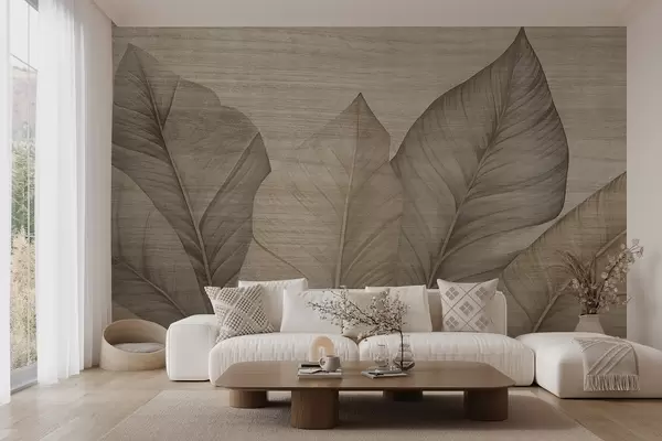 Papel tapiz Hojas nítidas con textura superpuesta Nr. w04438