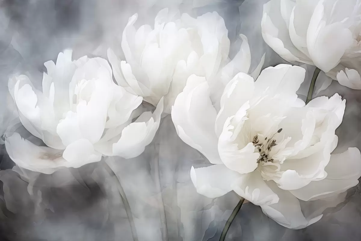 Papel tapiz Flores blancas sobre un fondo brumoso y delicado Nr. w04441