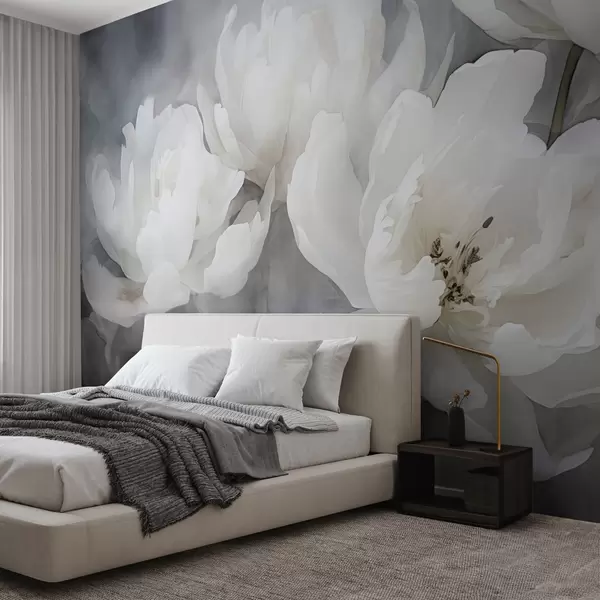 Papel tapiz Flores blancas sobre un fondo brumoso y delicado Nr. w04441