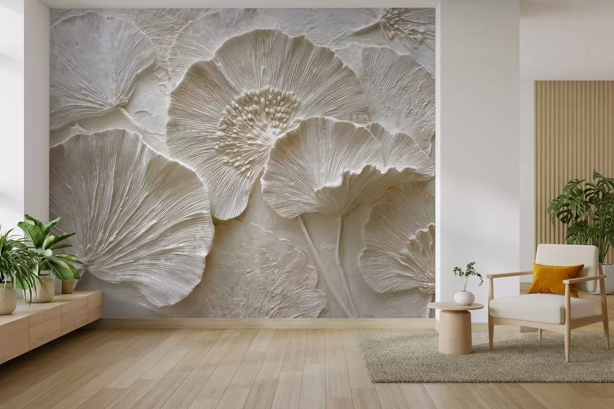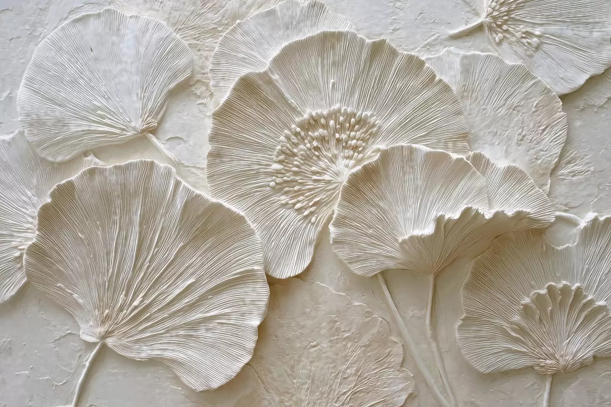 Papel tapiz Voluminosas hojas de ginkgo en ligero relieve Nr. w04444