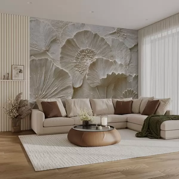 Papel tapiz Voluminosas hojas de ginkgo en ligero relieve Nr. w04444
