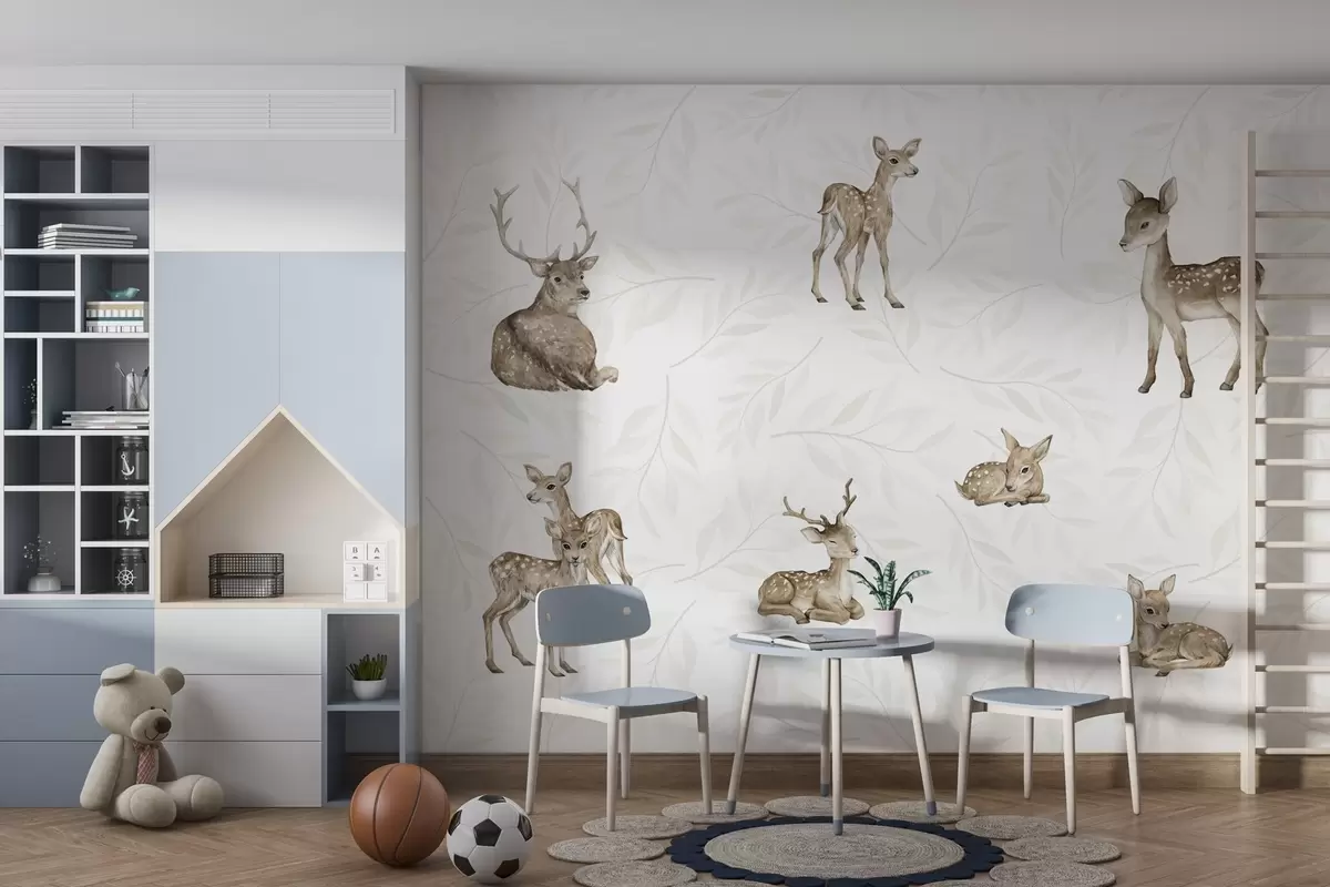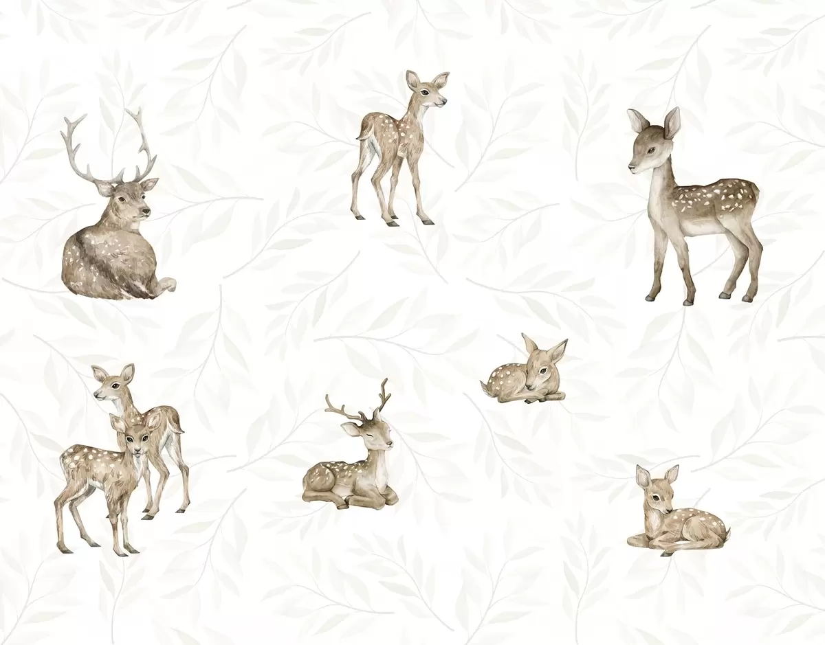 Papel tapiz Lindos cervatillos sobre un fondo claro con ramitas Nr. w04461