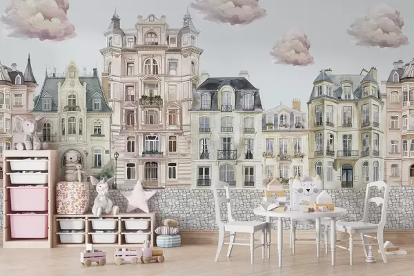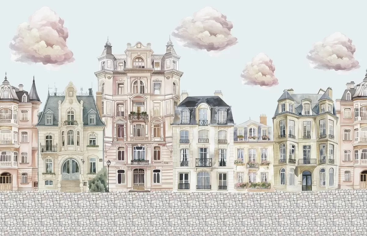 Papel tapiz Casas de colores, nubes Nr. w04474v1