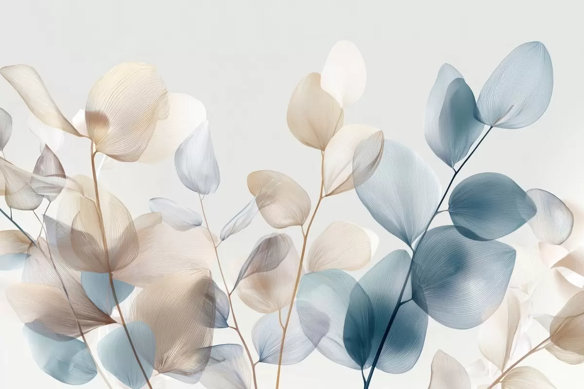 Papel tapiz elegantes hojas de eucalipto con nervaduras Nr. w04503