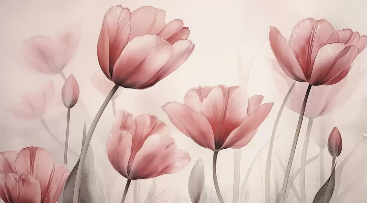 Papel tapiz Tulipanes con efecto quemado y textura Nr. w04519