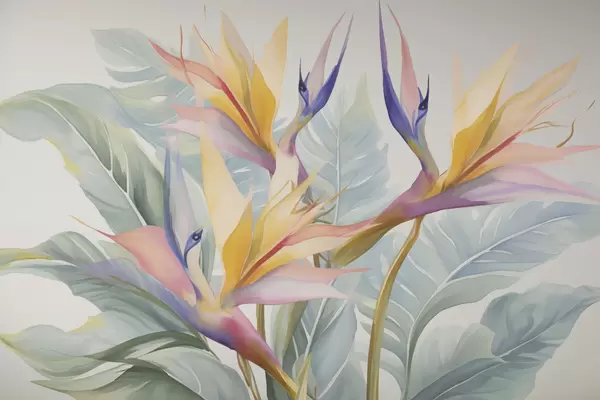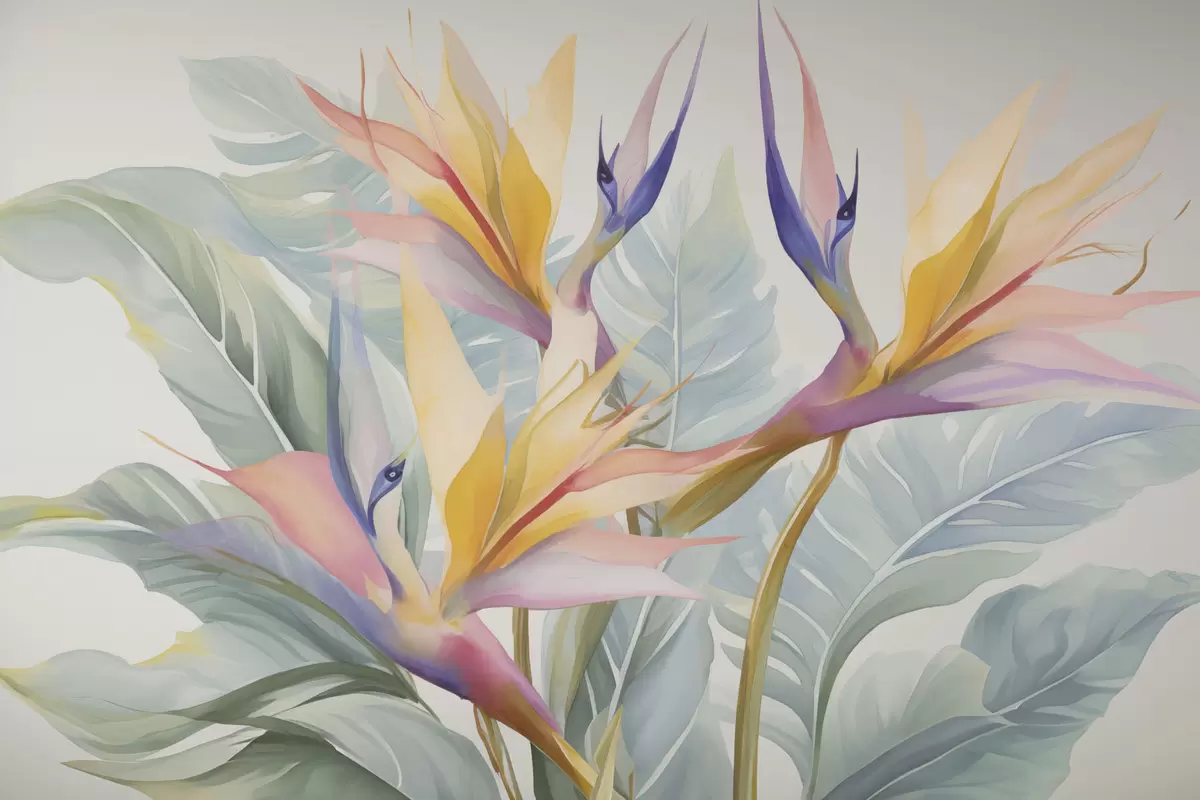 Papel tapiz Flores y hojas de Strelitzia Nr. w04527