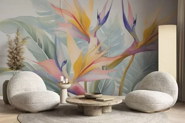Papel tapiz Flores y hojas de Strelitzia Nr. w04527