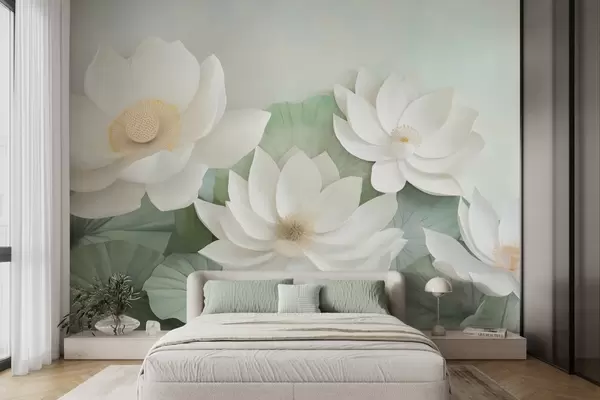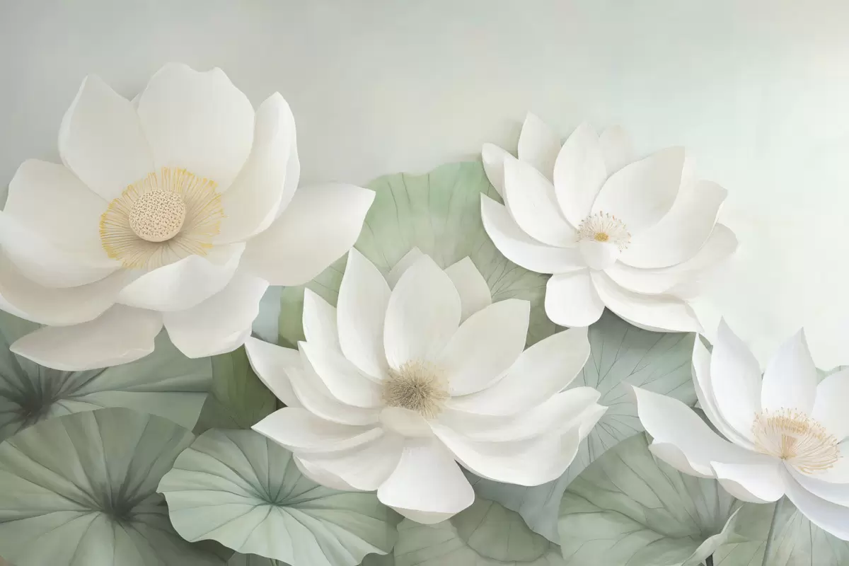 Papel tapiz Flores de loto en el follaje Nr. w04539
