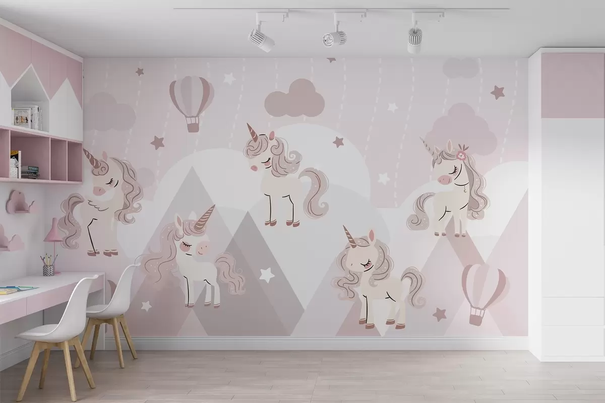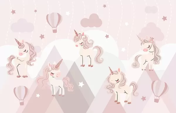 Papel tapiz Unicornios en montañas de cuento de hadas Nr. w04540