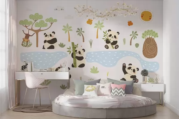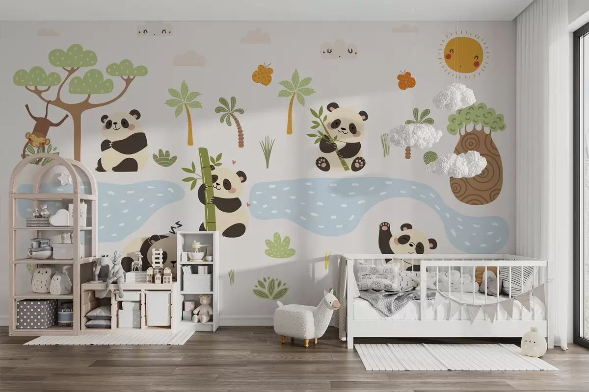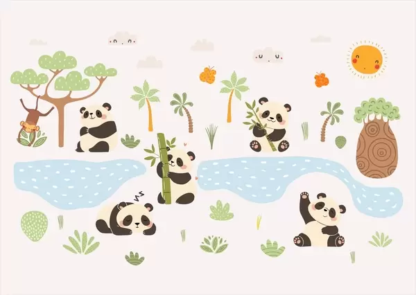 Papel tapiz Pandas alegres junto al río Nr. w04541