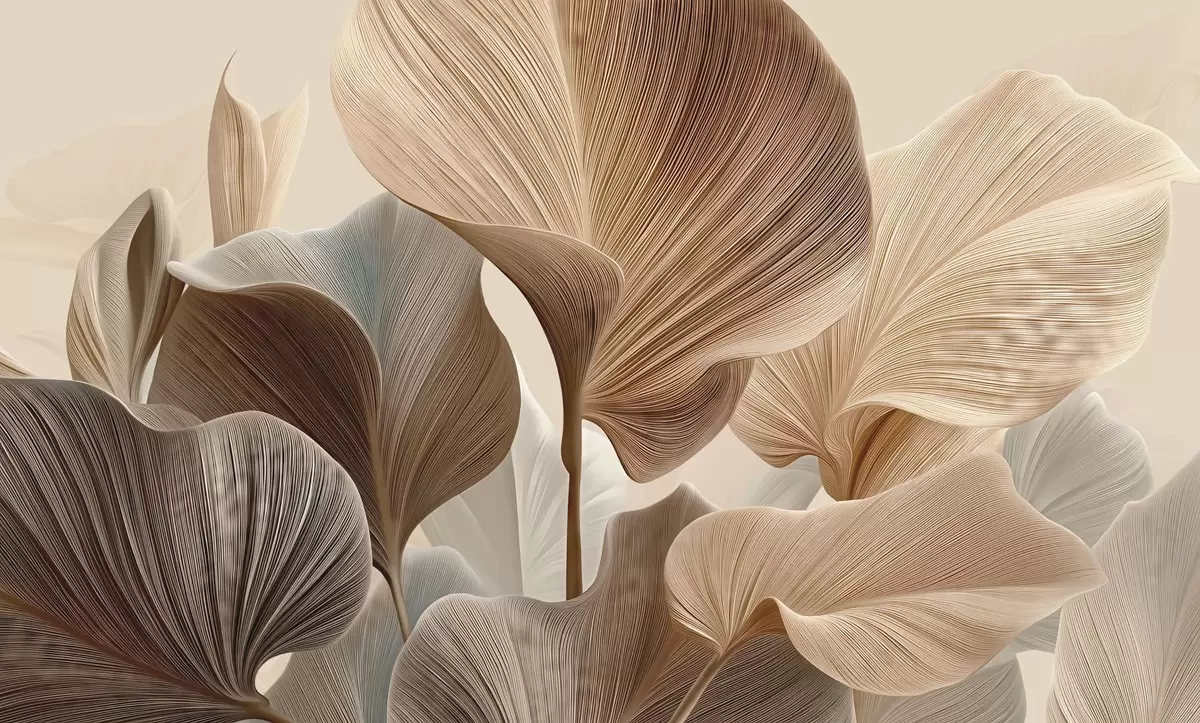 murales de pared Hojas elegantes de color beige con una textura lineal fina w04549