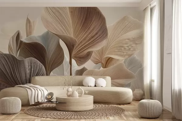 Papel tapiz Hojas elegantes de color beige con una textura lineal fina Nr. w04549